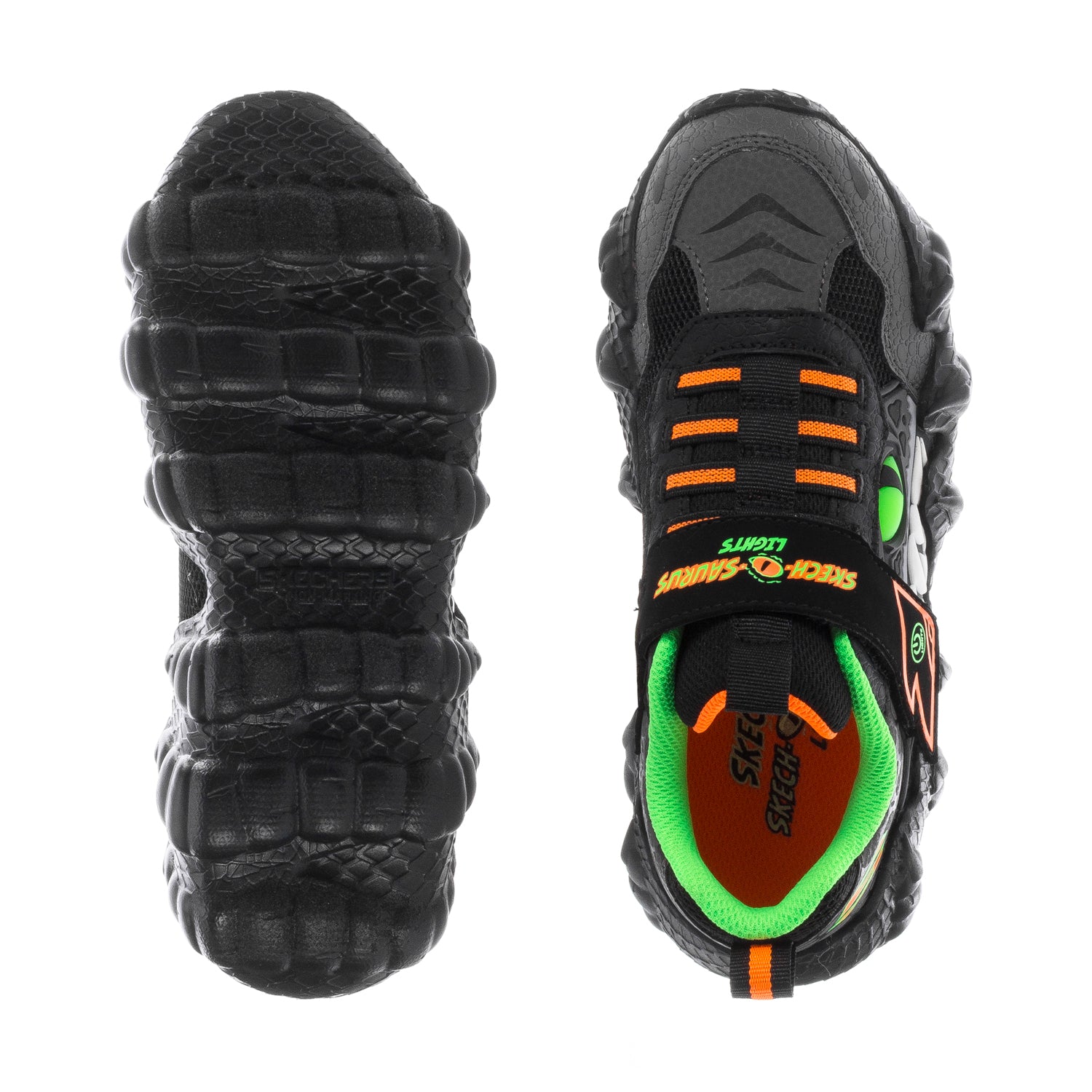 Roar! Prepare for some fierce footwear with the SKECHERS Skech-O-Saurus Kid's Sneakers. They feature an elaborate dinosaur design your youngster will absolutely adore. And they light up, only adding to their allure!
