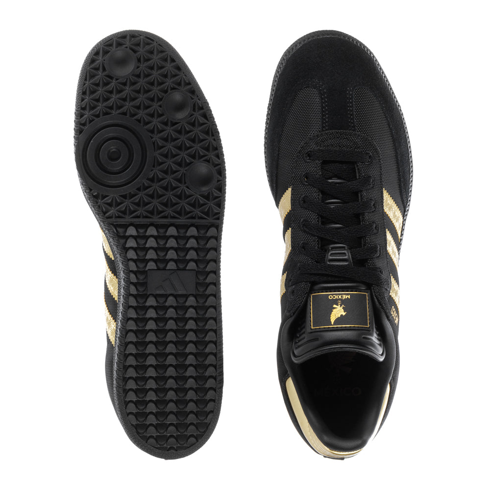 The adidas Samba is synonymous with the adidas brand. Originally created in 1950 for football players to train on frozen outdoor pitches, it has transcended soccer and plays even better in the mainstream today. This version of the legendary sneaker has a look that's true to the Samba of yesteryear, with an all-leather upper, serrated 3-Stripes, and a rubber outsole. This edition is part of a special adidas Mexico collection that includes a bold match kit and culture wear apparel, showing off a special commemorative badge that shows Mexico style.